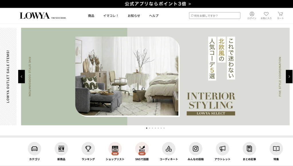 LOWYAはコスパを重視しながらもおしゃれな部屋を作りたい方に最適です。特に家具を一式揃えたい方におすすめです。