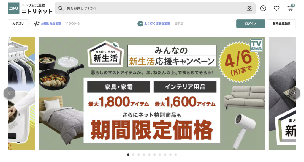 ニトリは「お、ねだん以上。」で知られるコスパ最強ブランドです。実用性重視で、初めての一人暮らしでも安心して利用できます。